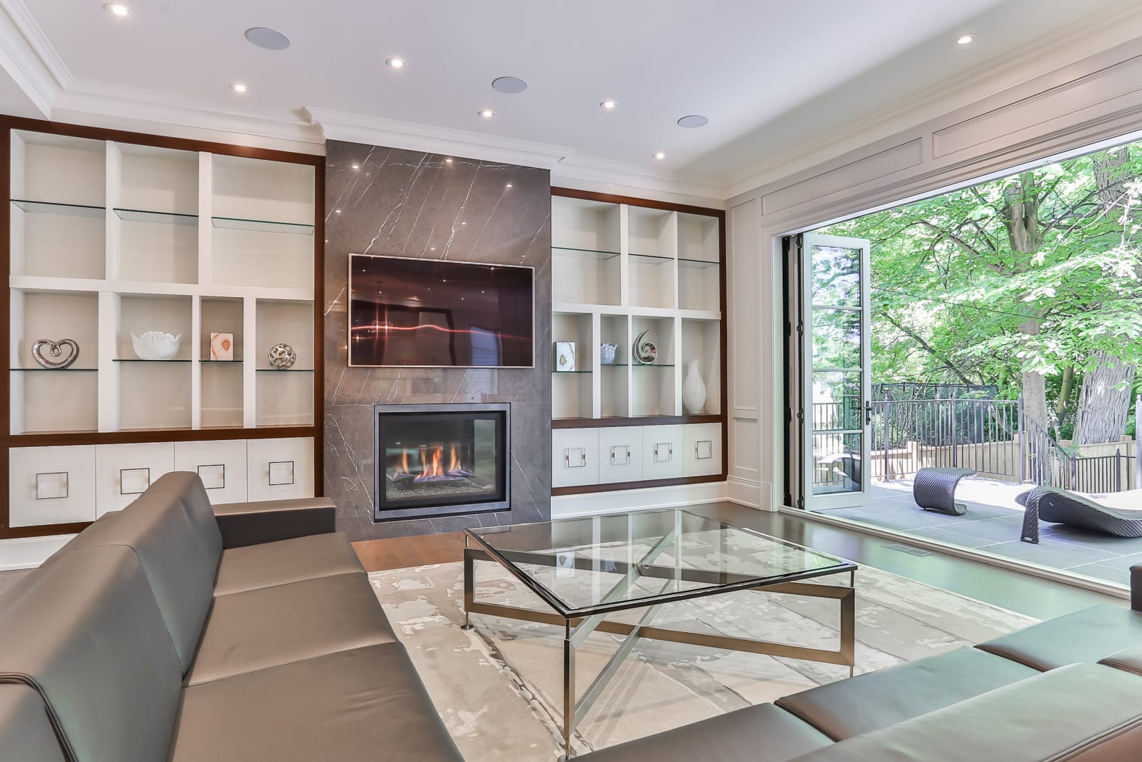 A gray cat slinks past a wooden house. There’s